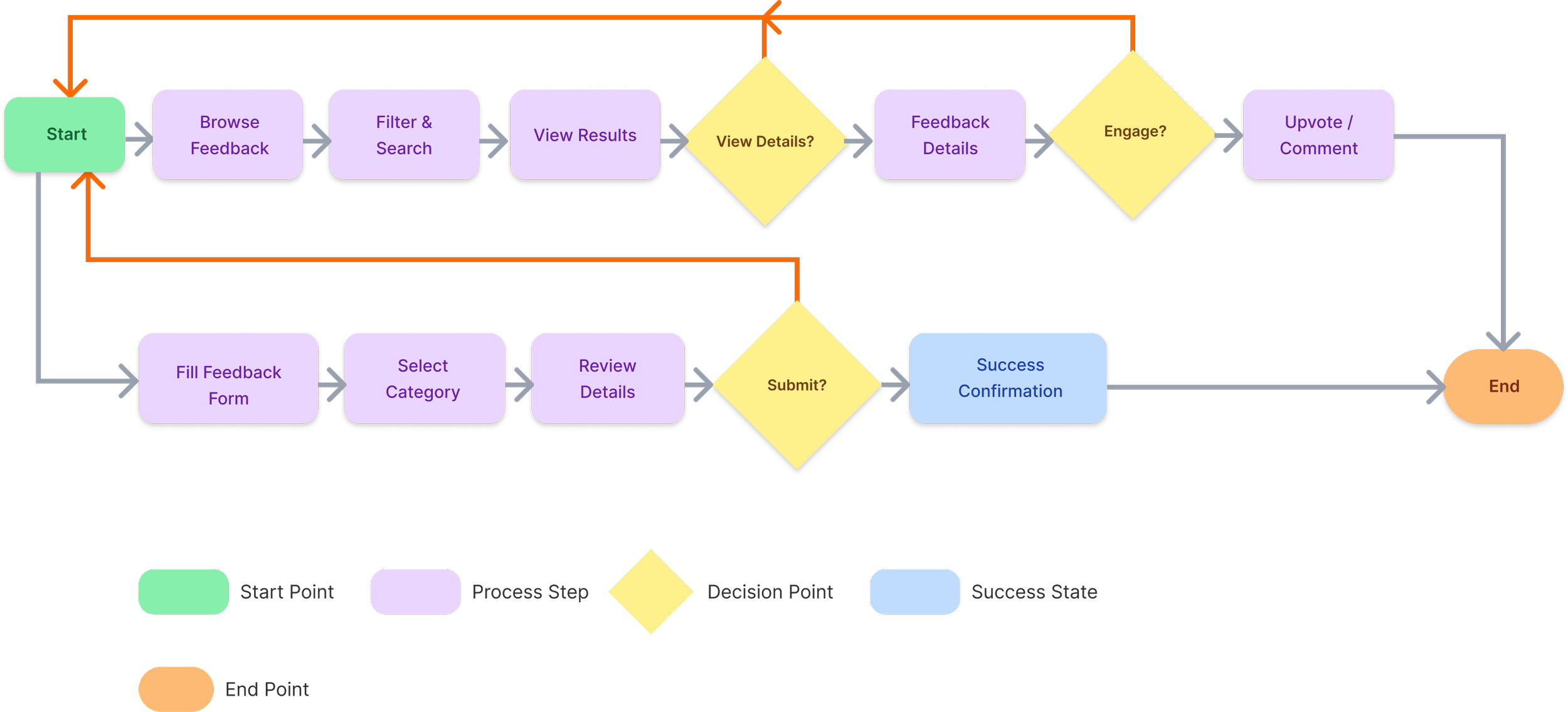 User flow for internal feedback submission and engagement