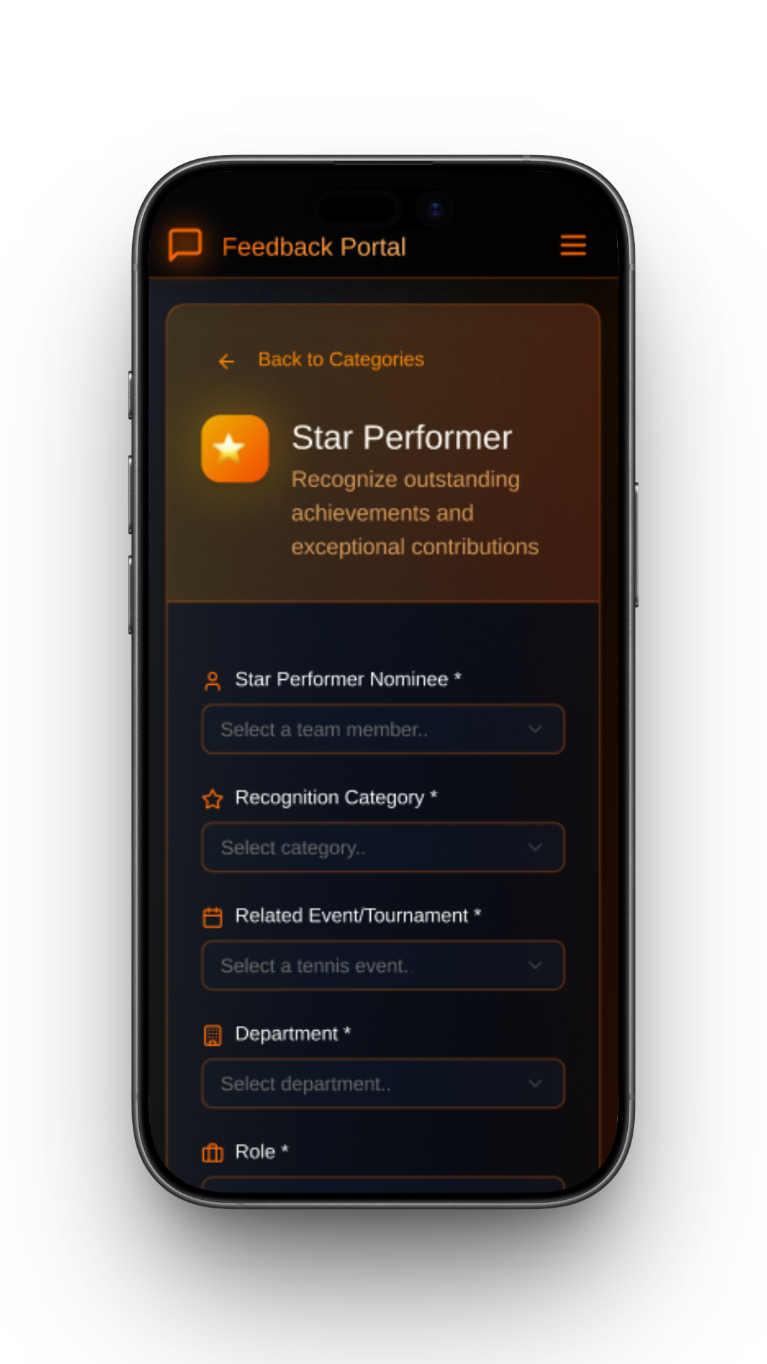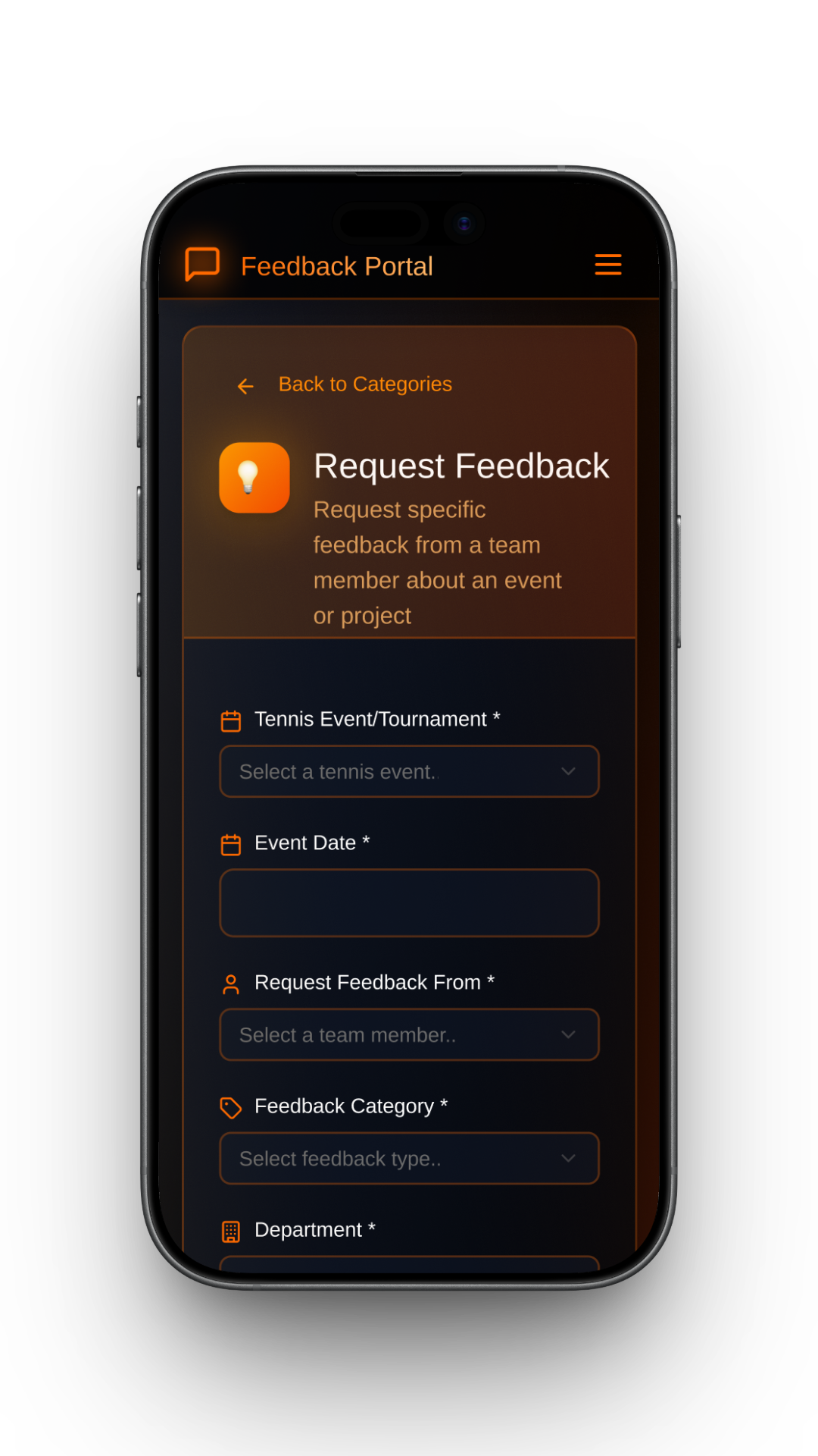 A feedback portal designed for operations staff, technicians, project coordinators, team leads, and management teams working across international tennis tournaments. The product supports quick, guided feedback submission and transforms structured input into actionable insights for training, planning, and staffing decisions.