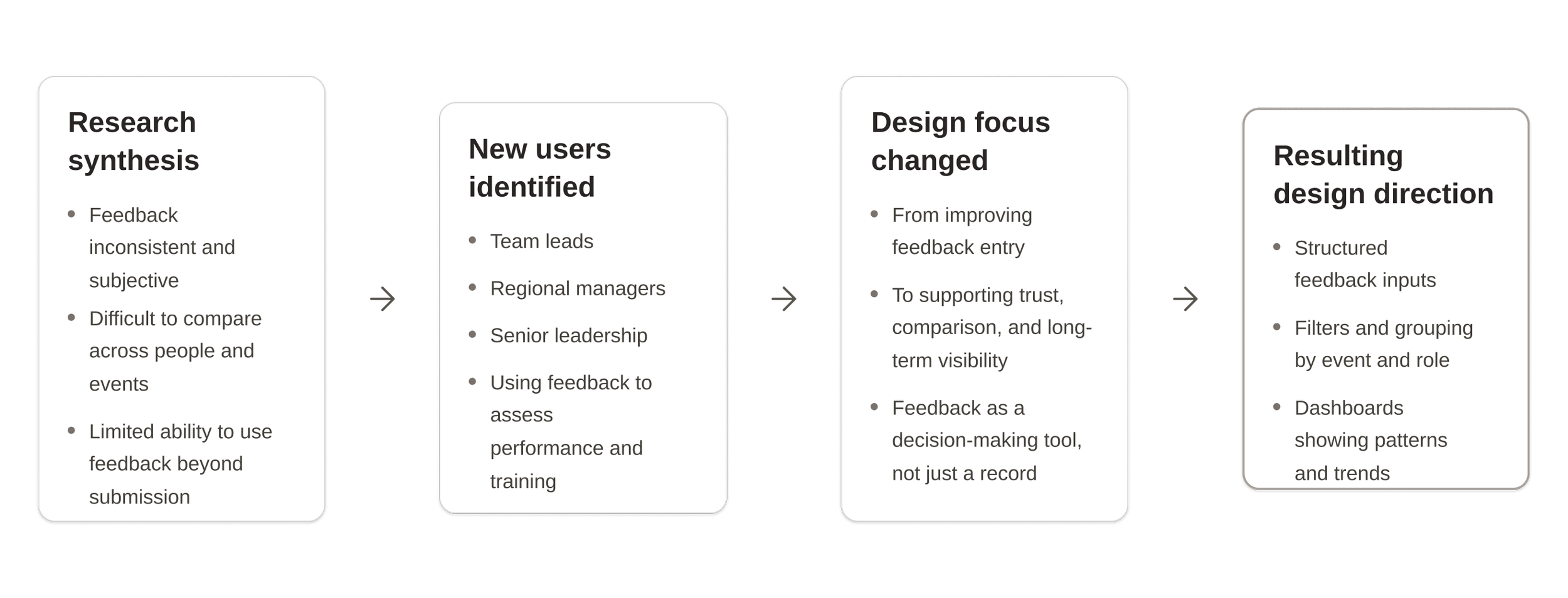 This reframed the problem from improving a single flow to designing a feedback system that supported multiple roles.